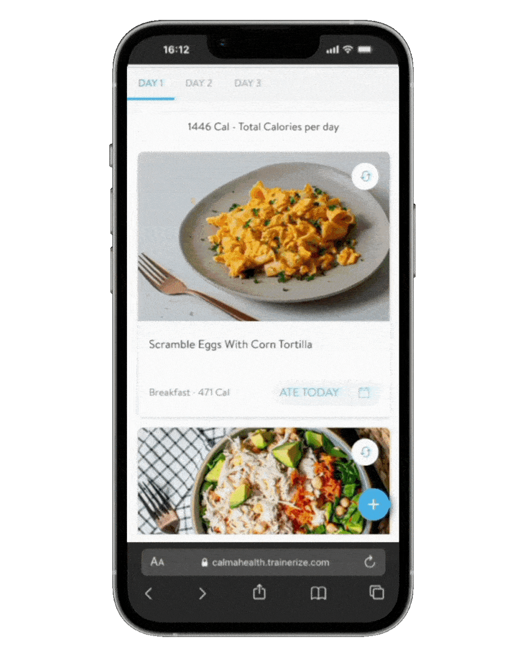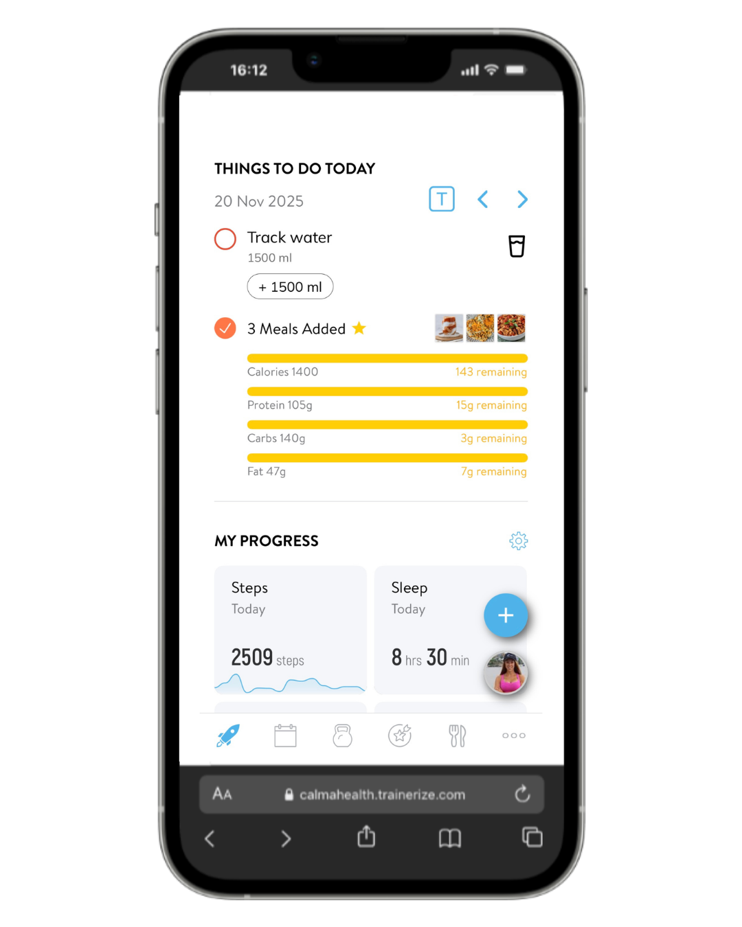 ✓ 12-week strength training program (gym or home options) progressed every 4weeks, with instructional videos and tutorials in Calma Health app.